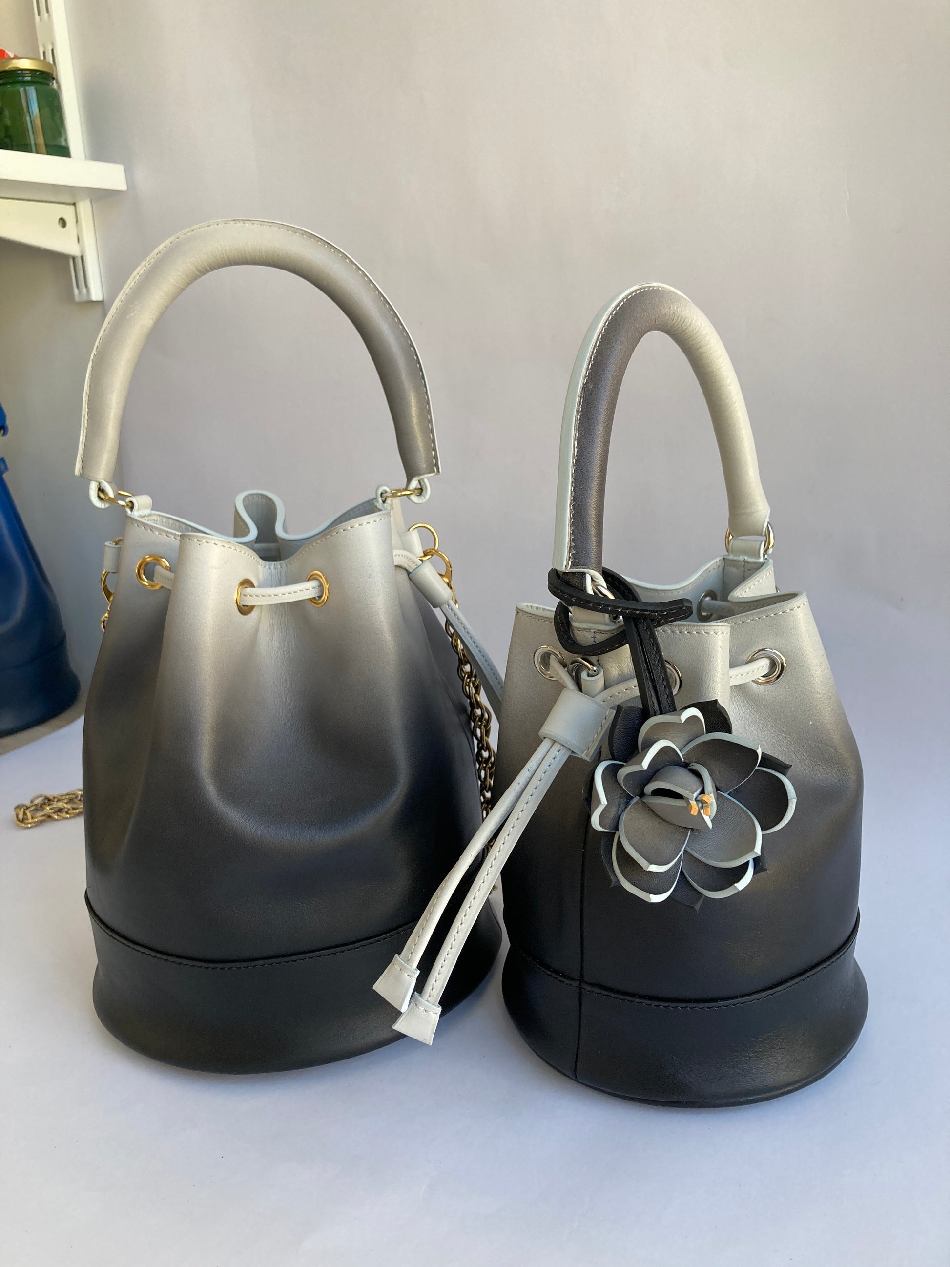 Sac seau petit modèle en cuir (cuir provenant d'une tannerie française).