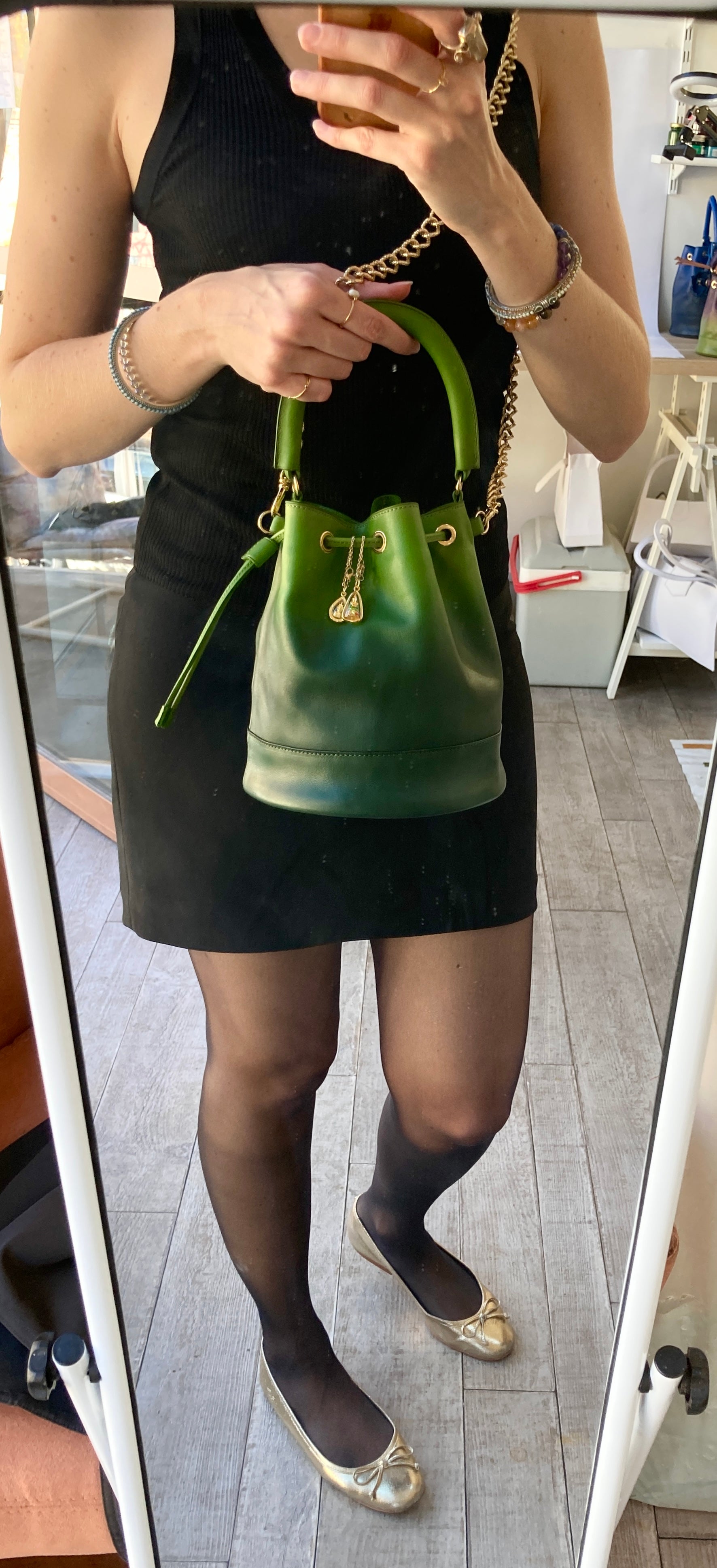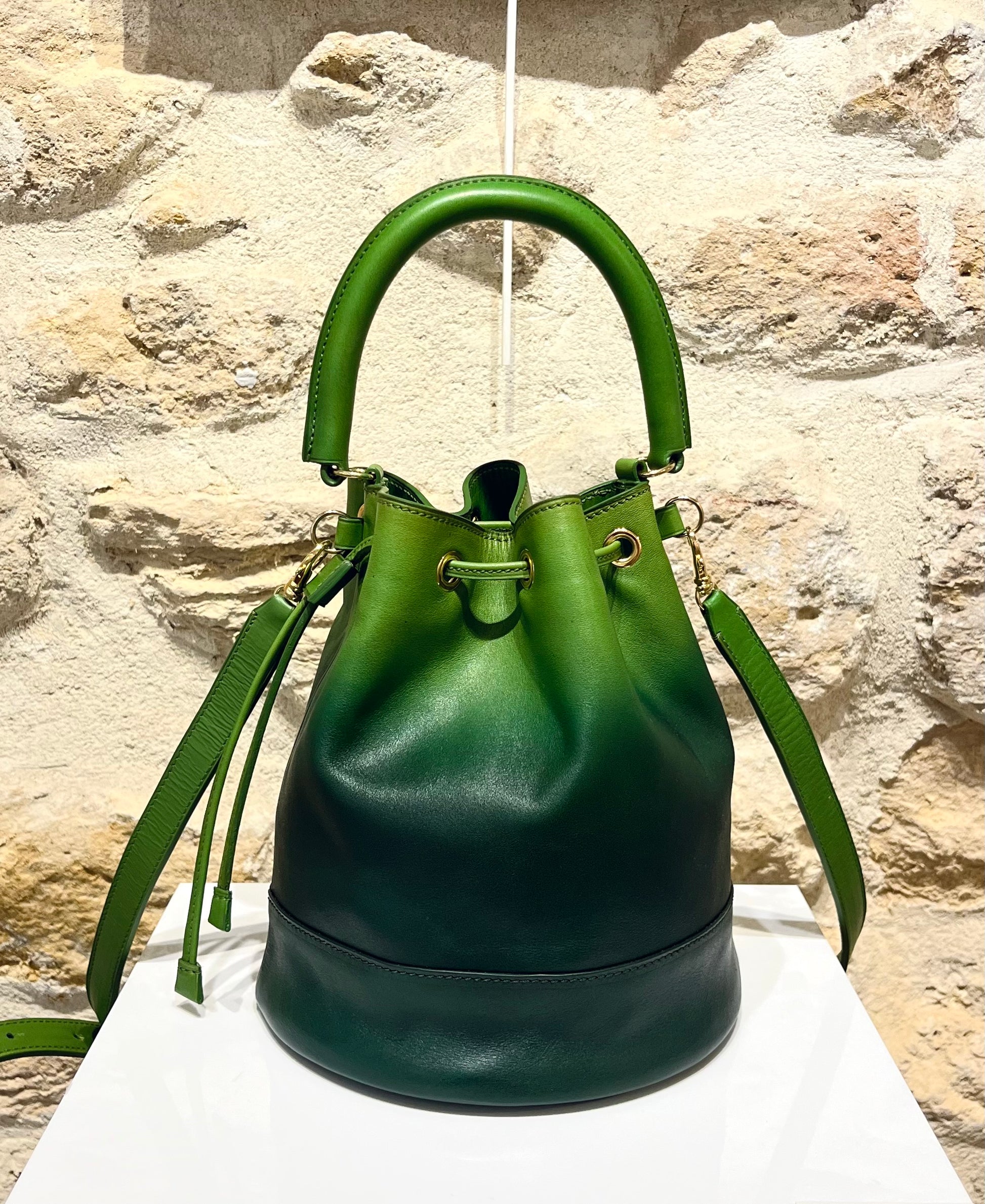 Sac seau petit modèle en cuir (cuir provenant d'une tannerie française).